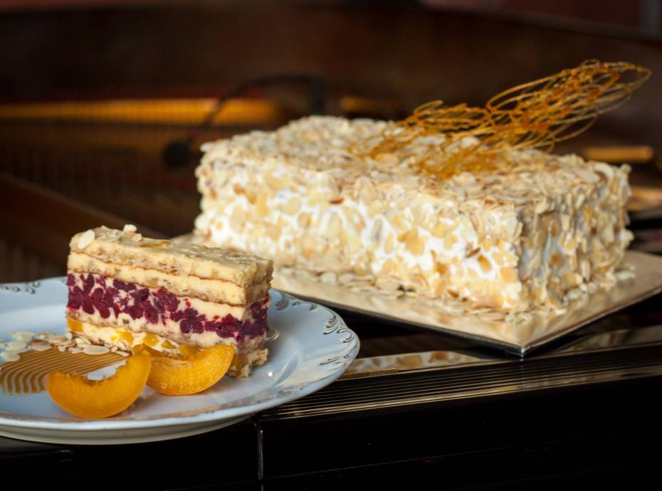 Ova moja Moskva torta nastala je kao rezultat pomnog istraživanja brojnih recepata na internetu za Moskva tortu, tokom nekoliko dana. Zainatila sam se da napravim nešto što bliže originalu, makar u estetskom smislu, kad već ukus prave Moskva torte ne znam jer nisam imala priliku da je probam. Evo kako izgleda original na sajtu hotela Moskva. Od voća je moguće staviti i breskve, iako se kao osnovni sastojci navode ananas, višnje, bademi i domaći krem po tajnoj recepturi.